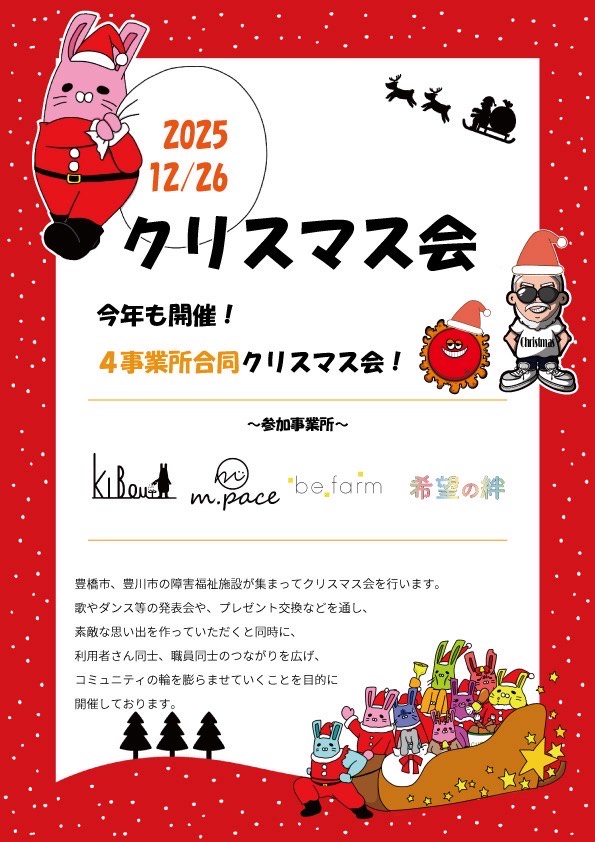 今年も開催します、今年で3回目となる他事業所を巻き込んでのクリスマス会。